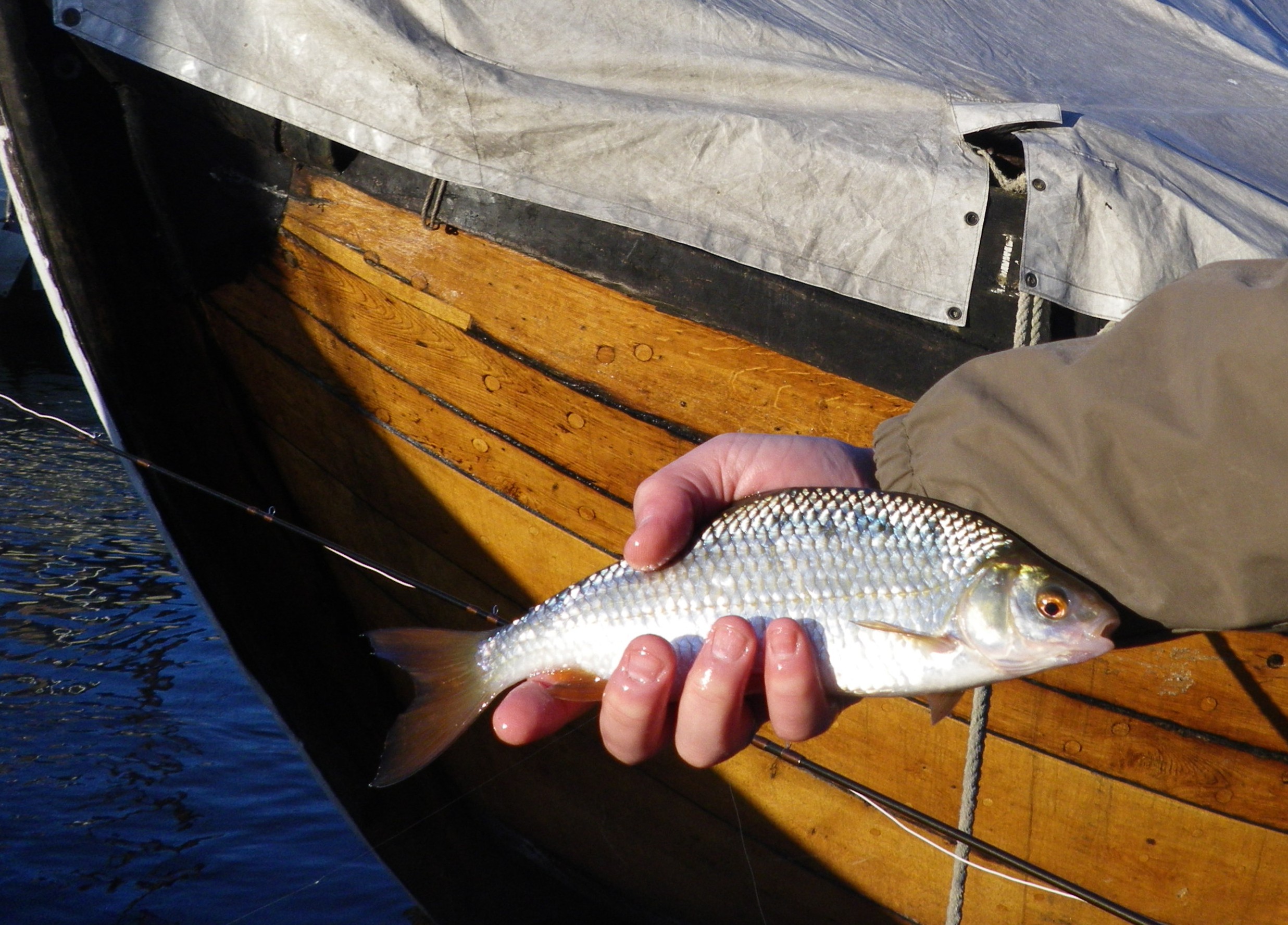 Weersvoorspelling was prima. De temperatuur zou wat hoger zijn. Geen regen van betekenis, en dus vond ik het een goed moment om nog een visje te vangen in de haven. Gisteravond snel nog wat vliegen gebonden. En om 13:00 hoppeta de auto in. Aangekomen in de oude haven met mijn #3 direct de eerste worp een mooie voorn. Dat was veelbelovend, en daarna niets meer.. een uur niets gevangen, maar wel zien vangen. Vliegen wisselen, andere leader, geen vis was te verleiden. Enfin, de wind stond lekker vanuit het NoordOosten in de haven, en nam mijn lijn keer op keer vlot mee. Dan maar mijn #5 gepakt en alles nog eens kritisch nagelopen, een langere leader, redtag nymph erop en doorvissen. Het zonnetje stond lekker op mijn kop en daar kwamen de eerste voorns, niet al te groot maar mooie sterke vissen. Om 17:00 kwam er een heel grote voorn voorbij zwemmen en dat was een feest, zo groot had ik er nog nooit een gevangen. Kortom, al met al een lekker dagje en om 18:30 met koude vingers richting huis.