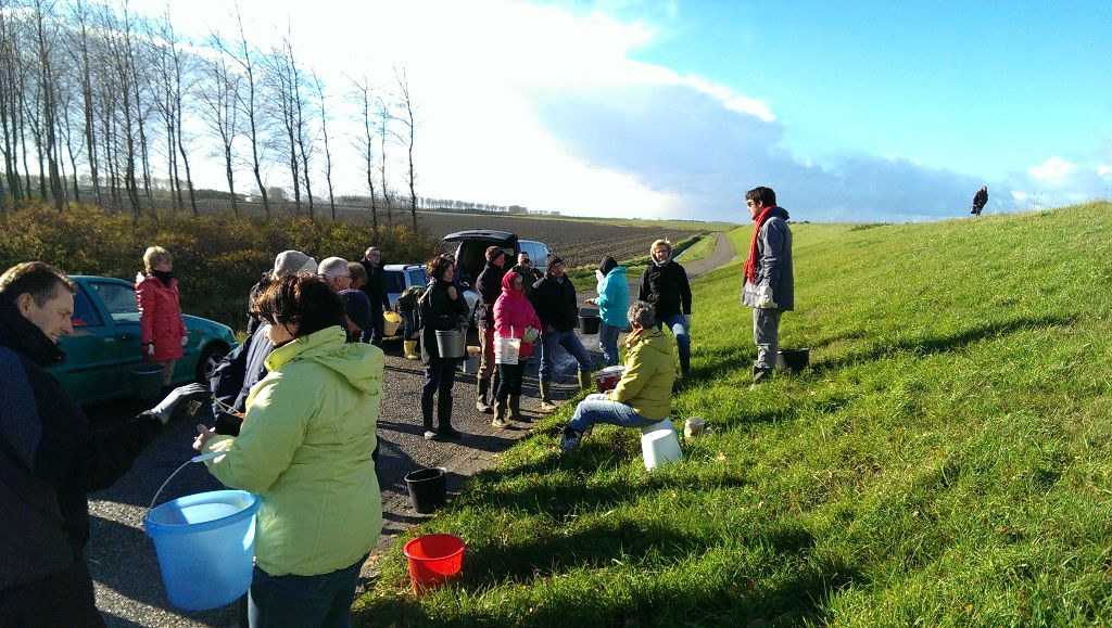 Eerst krijgen we uitleg over wat we gaan doen, die tijd komt goed uit want het water staat nog wat hoog, en dan op naar de plek waar die schelpen voor het oprapen liggen.