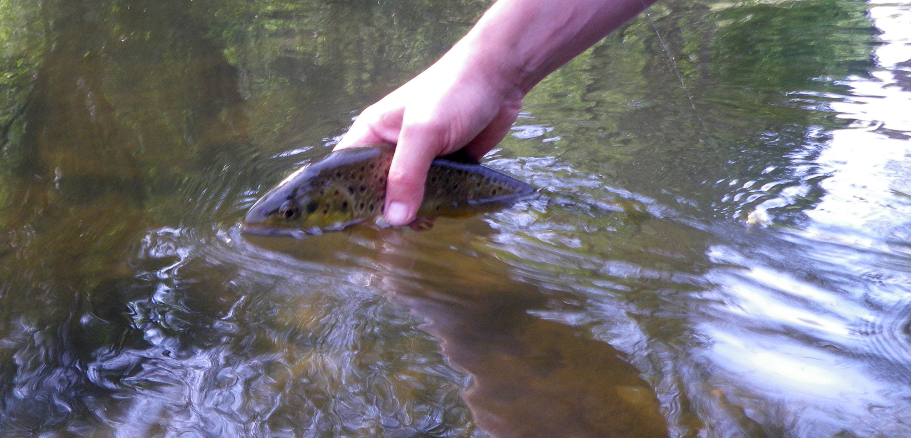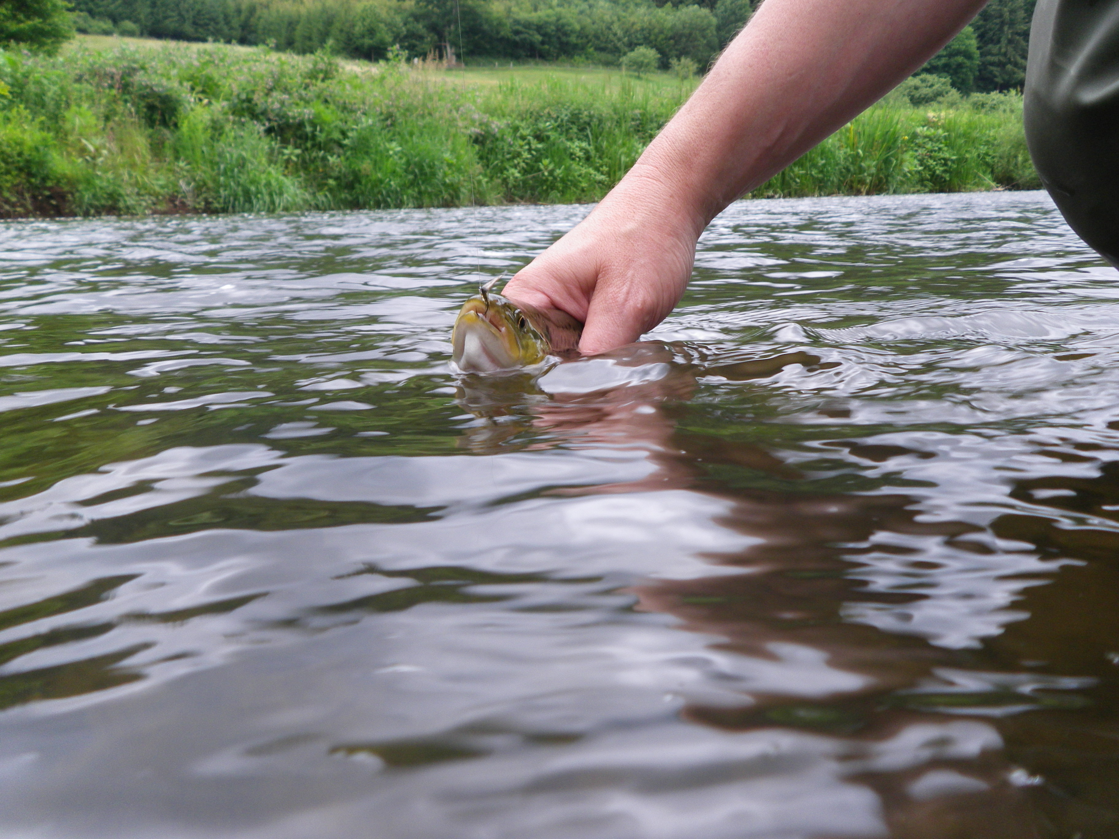 De afgelopen week waren Ton en ik druk bezig ons voor te bereiden op een lekker weekendje vliegvissen op de Kyll. We hadden er allebei enorm veel zin in en dus hadden we diverse afvink lijstjes gemaakt om niets te vergeten , drie dagen vissen, eten, drinken, koffie zetten en genieten in de natuur. Donderdag ochtend vroeg vertrokken we en alles verliep perfect, boodschappen werden ingeladen, hengels de hele handel en weersvoorspellingen waren goed. Na de nodige files onderweg kwamen we om 12 uur aan en konden we het water opzoeken. En daar begon het… vergeten de waterstand te controleren, en de Kyll stroomde als een gek. Nog net niet echt bruin maar wel troubel en snelstromend. Ook bleek dat door het koude weer van de afgelopen weken er nog geen vis uitgezet was dus we moesten het met overwinteraars doen. Enfin, dan maar geen droge vliegen even en eerst de nodige nymphen aangeknoopt en stukken afgevist zonder enig resultaat.